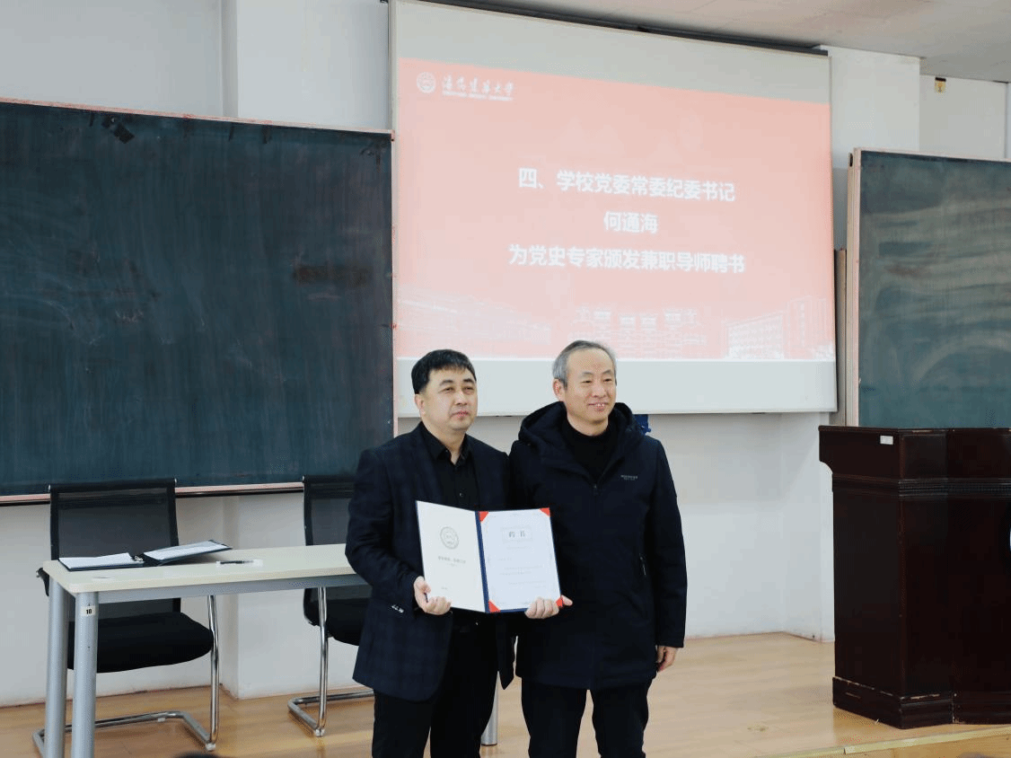 活动中,何通海为党史专家颁发了兼职导师聘书。yl7703永利集团官网负责人为学院分党校专职讲师代表颁发了聘书。中共辽宁省委党校图书馆党支部与yl7703永利集团官网党委共同签署了《党史学习教育工作条例》联学联建框架协议。