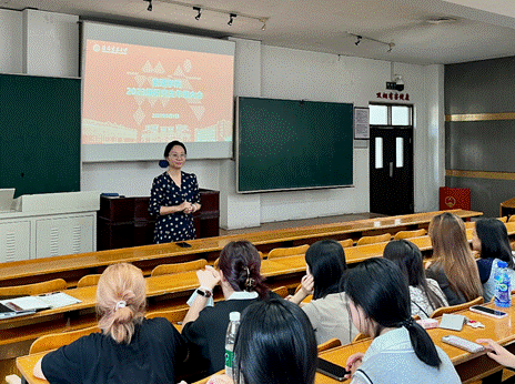 紧接着,教学秘书师一凡老师对研究生的教学工作加以补充说明,强调了要紧跟学校和学院步伐;辅导员张舒老师对员工服务、校园活动等方面展开讲解,新生们对此表现出了极大的兴趣,纷纷表示期待未来的学习和生活。